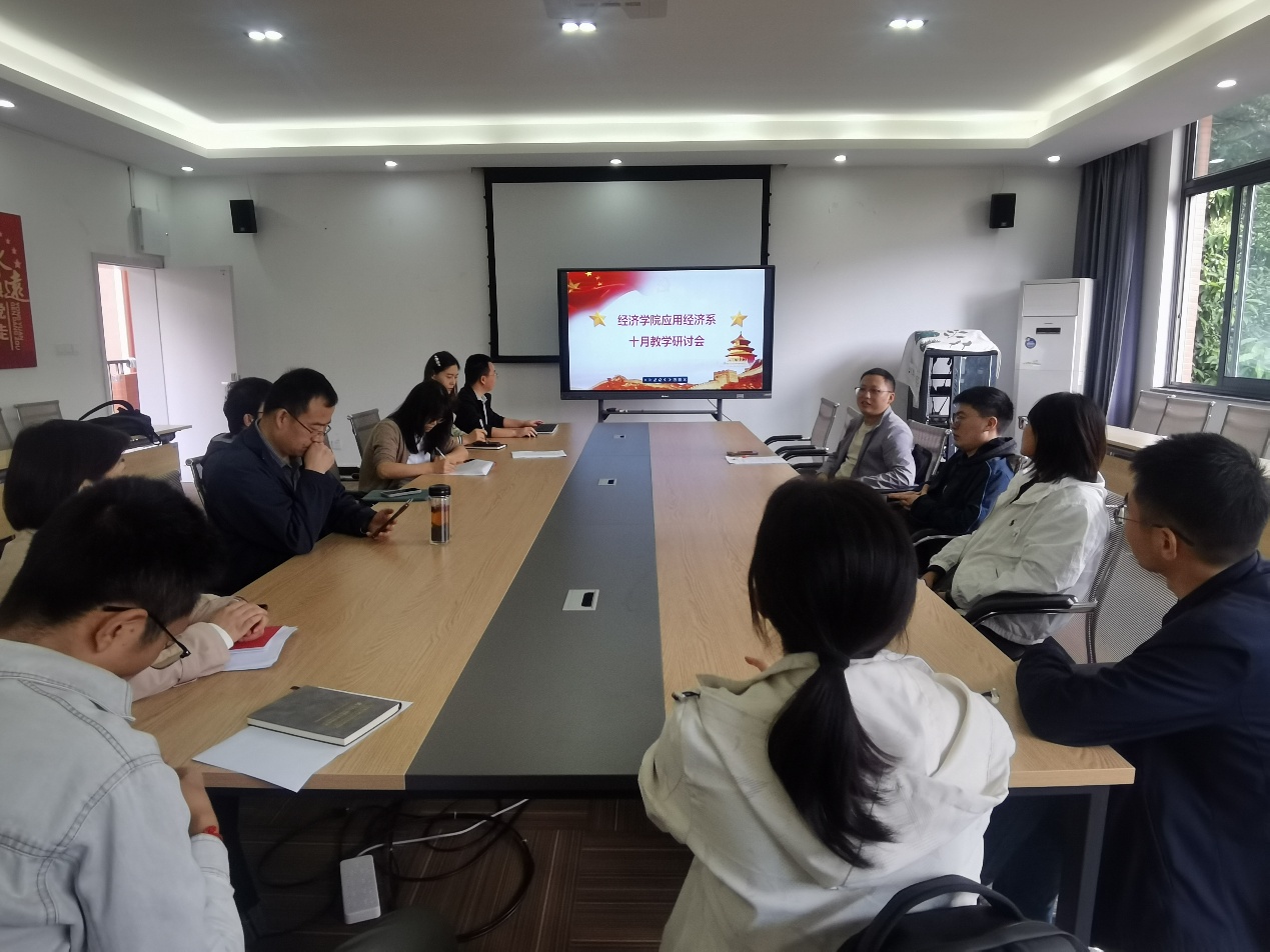 为进一步提升学年论文指导质量、以赛促教推动课堂教学改革,2025年10月23日中午,经济学院应用经济系在学院406会议室围绕“学年论文撰写”与“教学创新比赛”两大主题召开专题教研活动。系主任车四方主持会议,全体教研室教师参加。