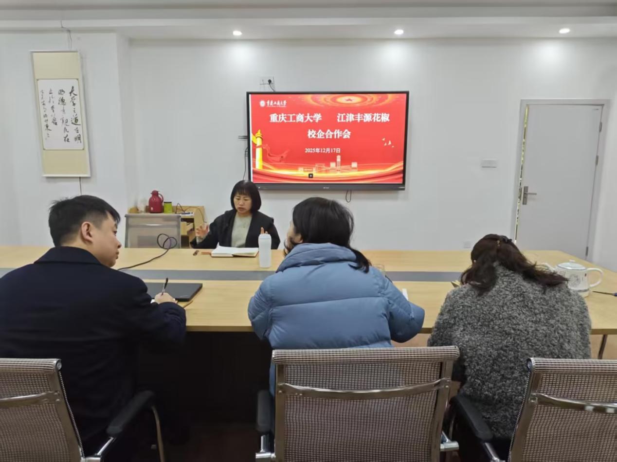 2025年12月17日,重庆工商大学经济学院与江津丰源花椒有限公司围绕学生创新创业培养主题,在田家炳书院404会议室顺利举行校企合作洽谈会。此次洽谈会旨在深化产教融合,搭建校企协同育人平台,推动特色农产品出海与学生创新创业能力培养深度衔接。江津丰源花椒有限公司总经理杨天旭,重庆工商大学经济学院院长宋瑛、国贸系主任蒋兴红、创新创业学院宋燕老师、2022级国贸专业辅导员陈璐及国贸专业部分学生代表出席。