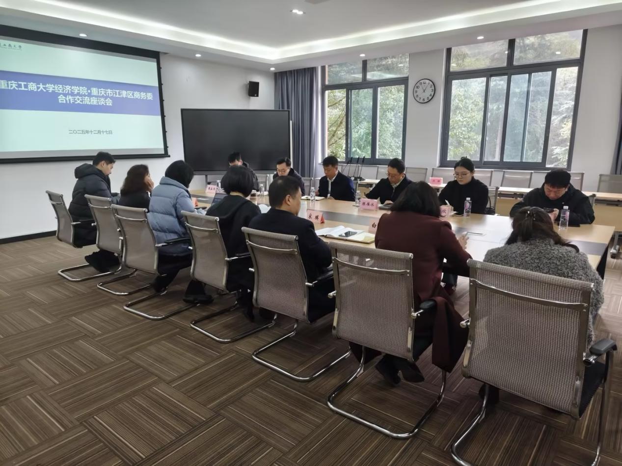 为深化校地协同创新,破解区域电商、渝品出海发展瓶颈,助力“十五五”规划落地见效,2025年12月17日,江津区商务委副主任陈雁冰率电商协会会长单位代表一行到访我校经济学院,就电商产业高质量发展、跨境电商助推“江津好物”出海等开展交流座谈。学院领导、专家学者与来访嘉宾围绕人才培育、品牌塑造、产业升级等核心议题深入研讨,共商校地合作新路径。