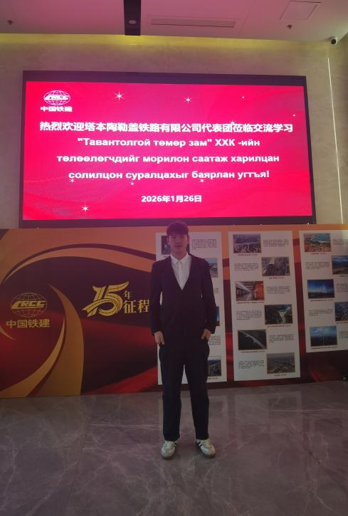 2026年1月26日至31日,蒙古国塔本陶勒盖铁路有限责任公司(TTZ公司)代表团来华交流培训活动在蓉成功举办。我校经济学院学生西拉沐沦全程参与,承担中国铁建大桥工程局集团第五工程有限公司与TTZ公司间的翻译工作,负责蒙古国领导的接待、出行安排及陪同事宜,同时兼顾技术、行政及日常服务,全力保障活动顺畅推进。