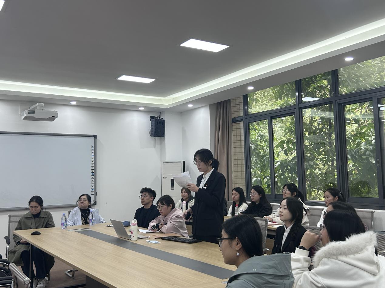 会议第二议程为拟发展党员答辩,舒雨阳、李星月、付乐怡等7 名发展对象依次登台,从个人思想、专业学习、社会实践情况入手,详细介绍了成长经历,深情讲述入党初心,表达对加入中国共产党的坚定追求和为党的事业奋斗终身的决心。在理论知识问答环节,答辩对象围绕党的基本理论、方针政策等内容从容应答,充分展现了扎实的理论功底和端正的入党态度。全体党员认真聆听,对答辩对象的表现进行综合评议,为进一步考察发展对象的政治素养和思想觉悟提供了重要依据,切实把好党员发展 “入口关”。