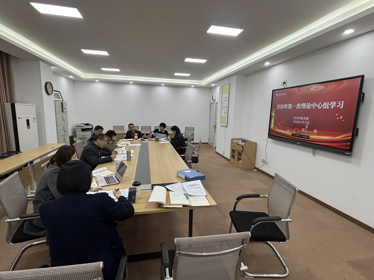 3月23日上午,经济学院党委理论学习中心组2026年第一次集中学习会暨树立和践行正确政绩观学习教育读书班在田家炳书院404会议室举行。学院党委书记唐春秋主持会议,全体班子成员、理论学习中心组成员参加会议。