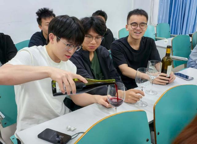 课堂全程互动不断,安易老师风趣的讲解、接地气的知识分享,充分调动了学生的学习积极性,让大家在轻松愉悦的氛围中收获满满。此次红酒品鉴拓展课堂,是商品学课程的一次有效延伸,不仅丰富了专业教学形式,填补了学生在酒类商品品鉴领域的知识空白,更让同学们在醇香佳酿中触摸到商品背后的文化内涵,为专业学习与实践积累增添了生动的一课。