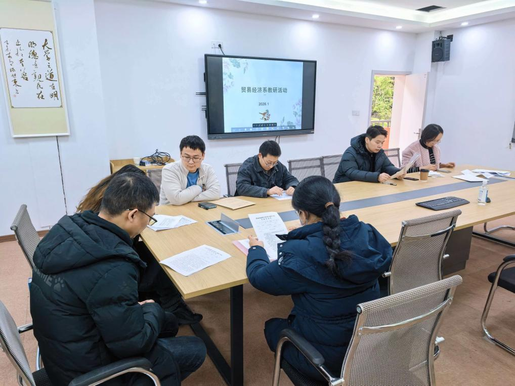 2026年1月16日,经济学院贸经系于田家炳书院404会议室围绕课程思政建设召开专题会议,会议由杨海丽主任主持,全系教师参会。