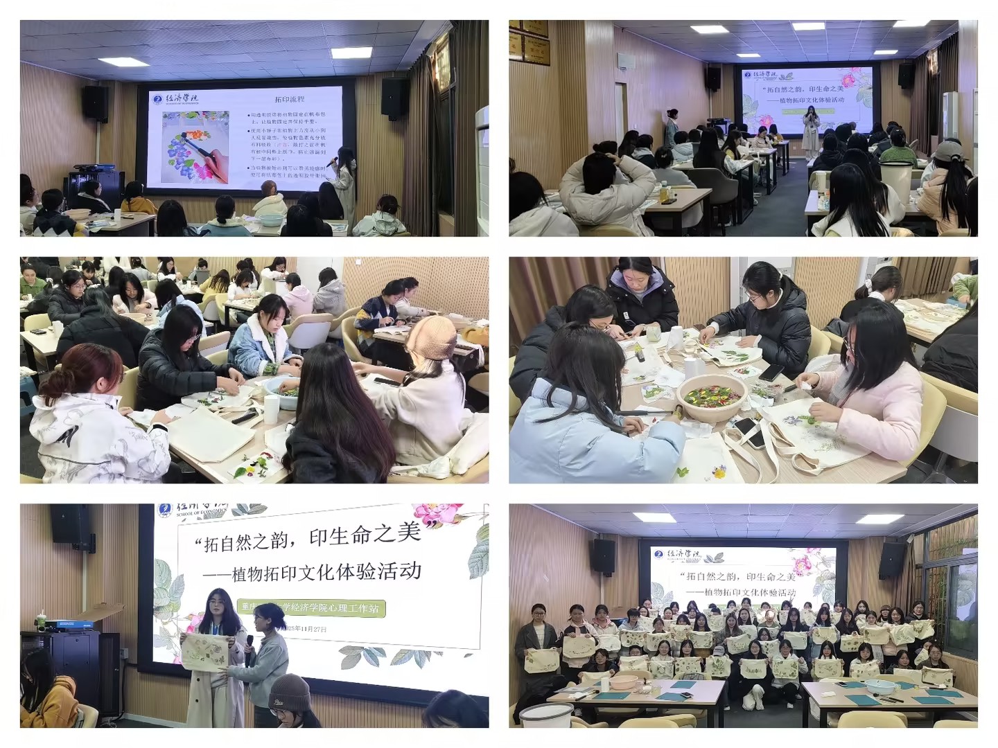 为丰富校园文化生活,引导学生亲近自然、舒缓压力,传承非物质文化遗产,11月27日下午,经济学院心理工作站依托第四届“关爱生命健康,绽放青春光彩”珍爱生命健康月活动,在田家炳书院102教室成功举办“拓自然之韵,印生命之美”植物拓印文化体验活动。来自全校各学院的50名学生齐聚一堂,在草木清香与传统技艺的碰撞中,开启了一场兼具审美体验与心灵治愈的文化之旅。